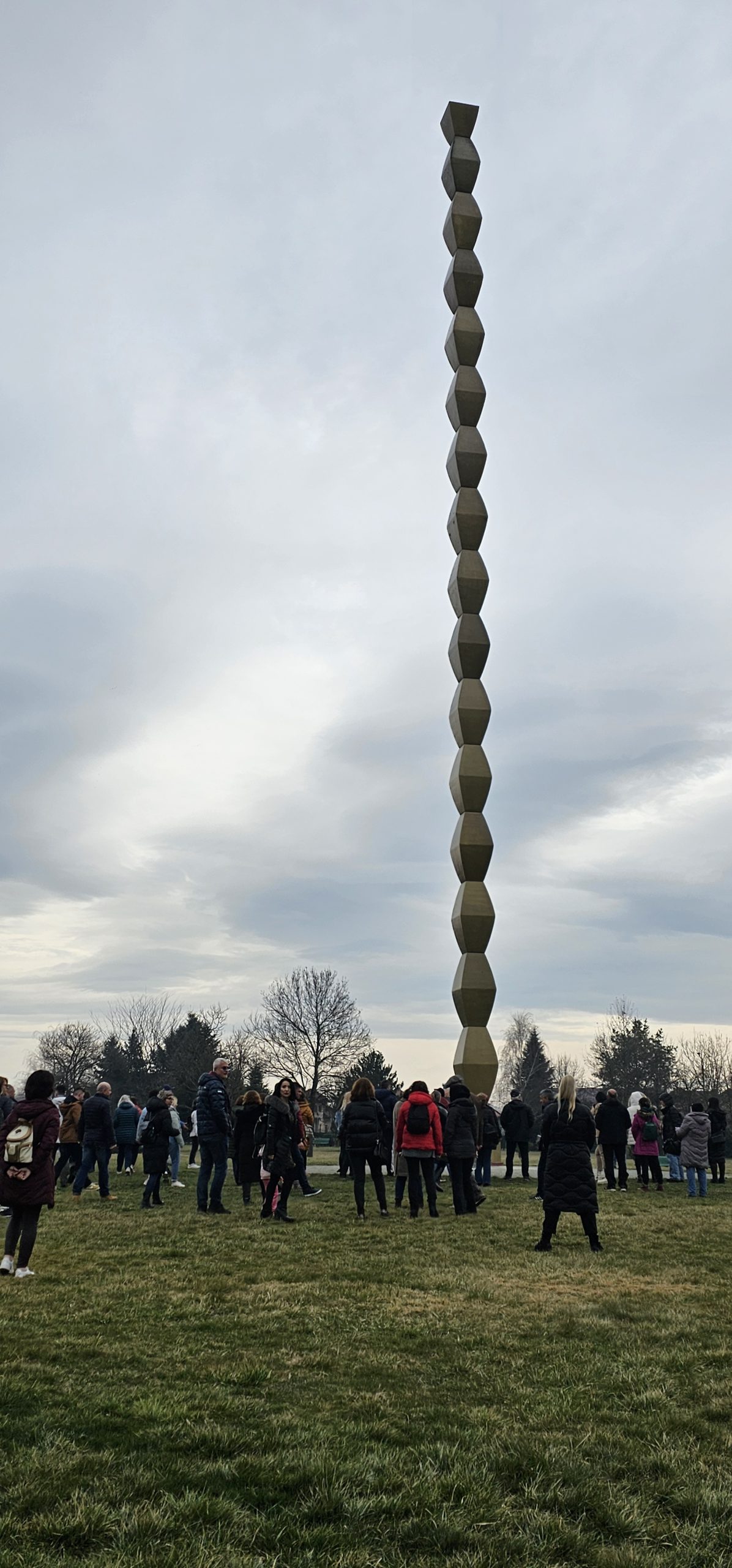 Then we started heading towards Târgu Jiu – meetup place: The Table of Silence. The group dwindled and I realized that the spiritual importance of following Brâncuși’s axis is not understood: The Table of Silence – The Gate of The Kiss –  “Sfinții Apostoli” Church – The Endless Column. “The Path of the Souls of the Heroes”, as Brâncuși called it, was created between 1937 and 1938 in memory of the heroes who fell in the First World War.