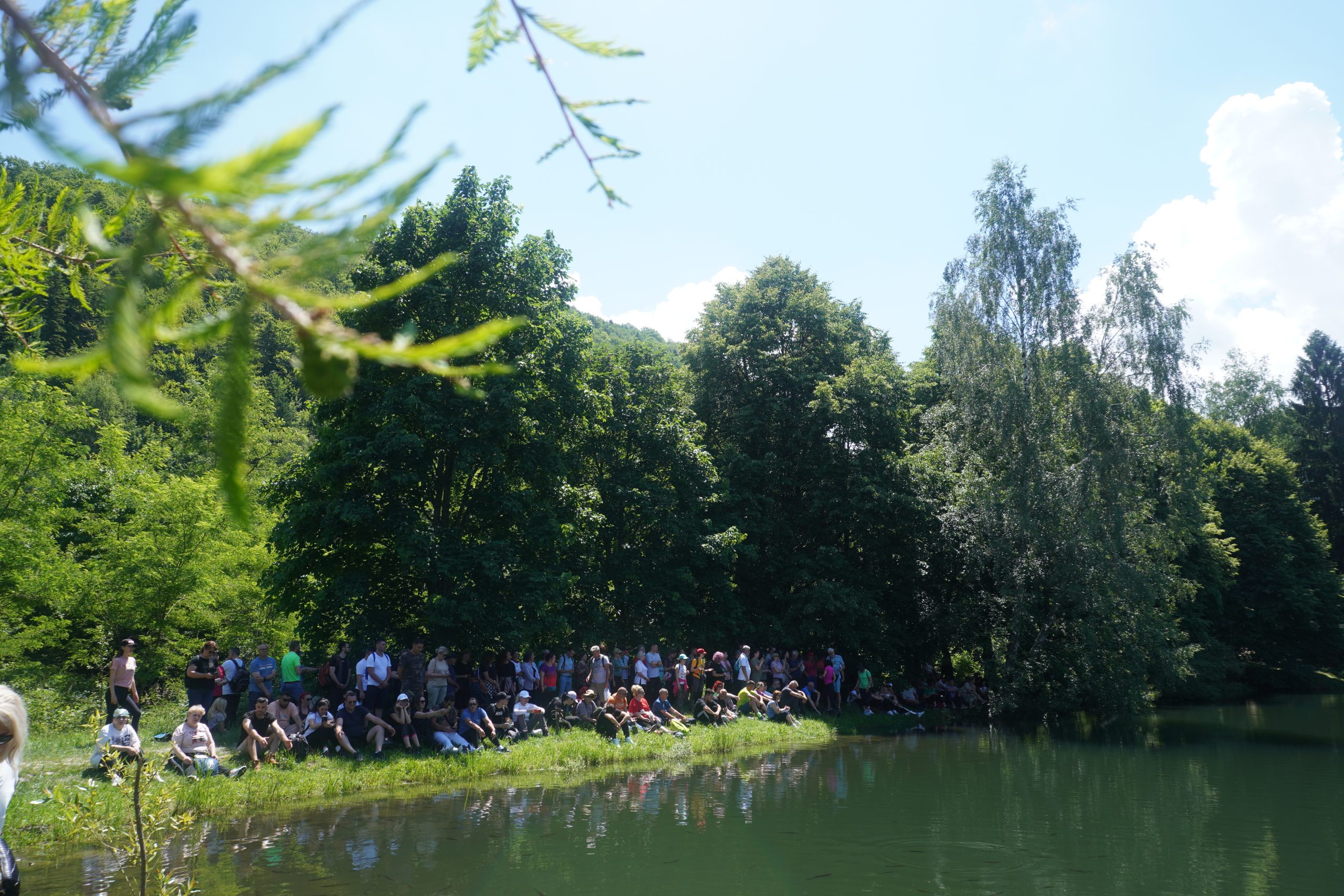 Then we headed to Brâncoveanu Monastery – Sâmbăta de Sus. After we lit candles once again and paid for litanies, at the heart-shapped lake from behind the Monastery, we prayed. We thanked Priest Arsenie Boca for welcoming us, for everything he does for the romanian people and for each one of us. Next, in order to harmonize even better with the group and the place, from produce sold by the locals, we set up a table with “everything” for everyone. We even had sweets for the children in the group.