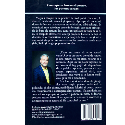 Cu o expertiză vastă în domeniul ortodoxie, al artelor marțiale și al terapiei Reiki, Dr. Ovidiu-Dragoș Argeșanu oferă cititorilor o perspectivă unică asupra fenomenului fascinant al magiei. Cartea invită la o călătorie în care cunoștințele ezoterice modelează diverse aspecte ale vieții cotidiene, de la terapii alternative la decizii politice.